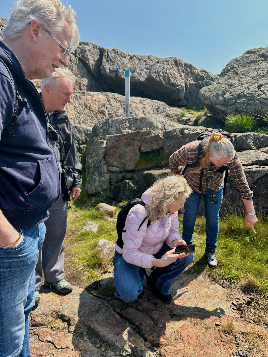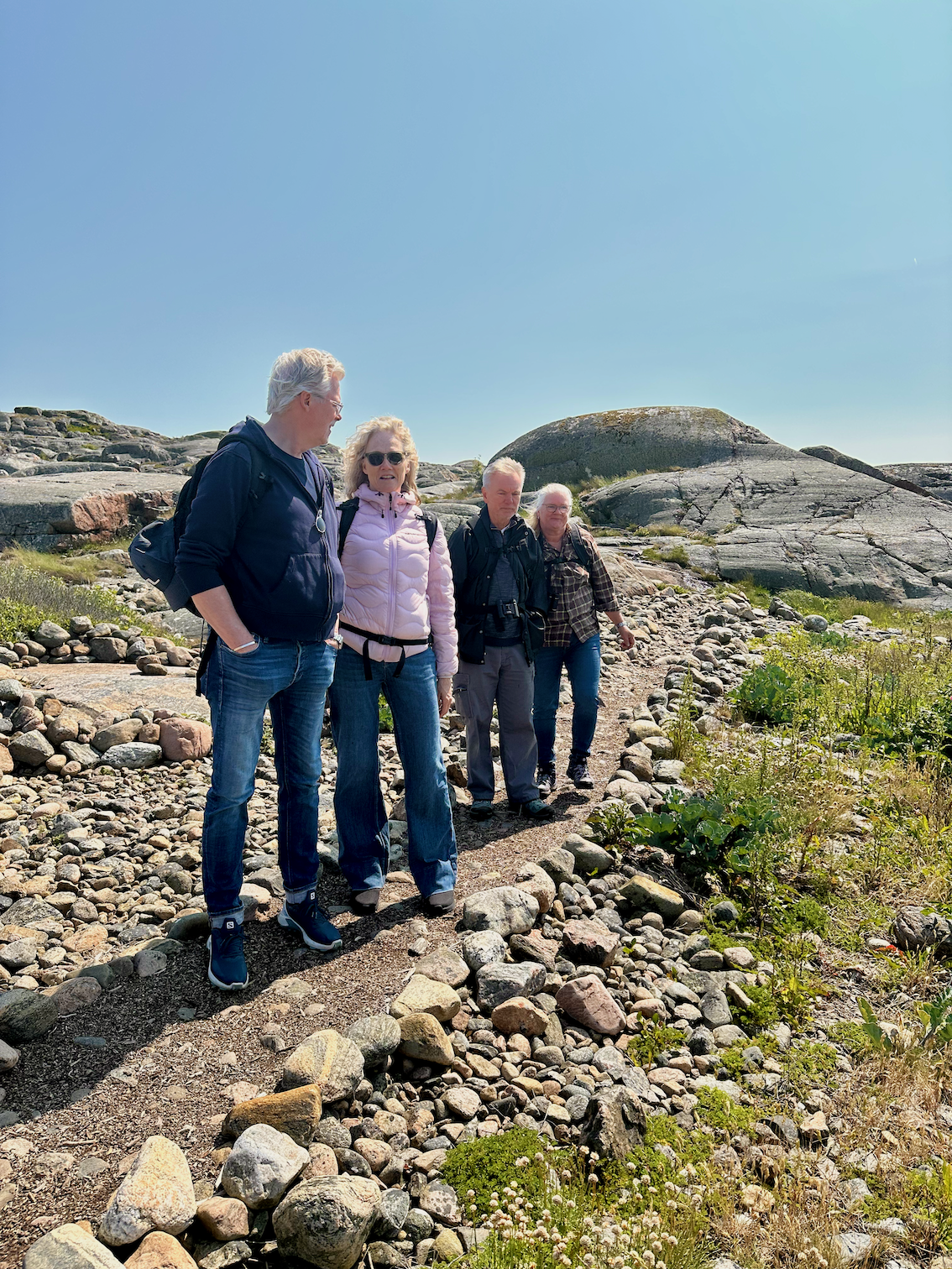 Last Sunday the first hiking group of the season arrived! We had a wonderful trip in the sun and wind. In the scarce and sparse greenery, we started by meeting the singing birds, then we went up the mountain and looked at a 360-degree view. We spent a lot of time studying our fantastic gneiss rocks, looking at the sand through a magnifying glass and having coffee in the lee of the sun-warmed rock. We had wonderful encounters between people and with nature.